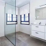 Bathroom facilities also include a walk-in shower. There are bath sheets for guests' comfort.